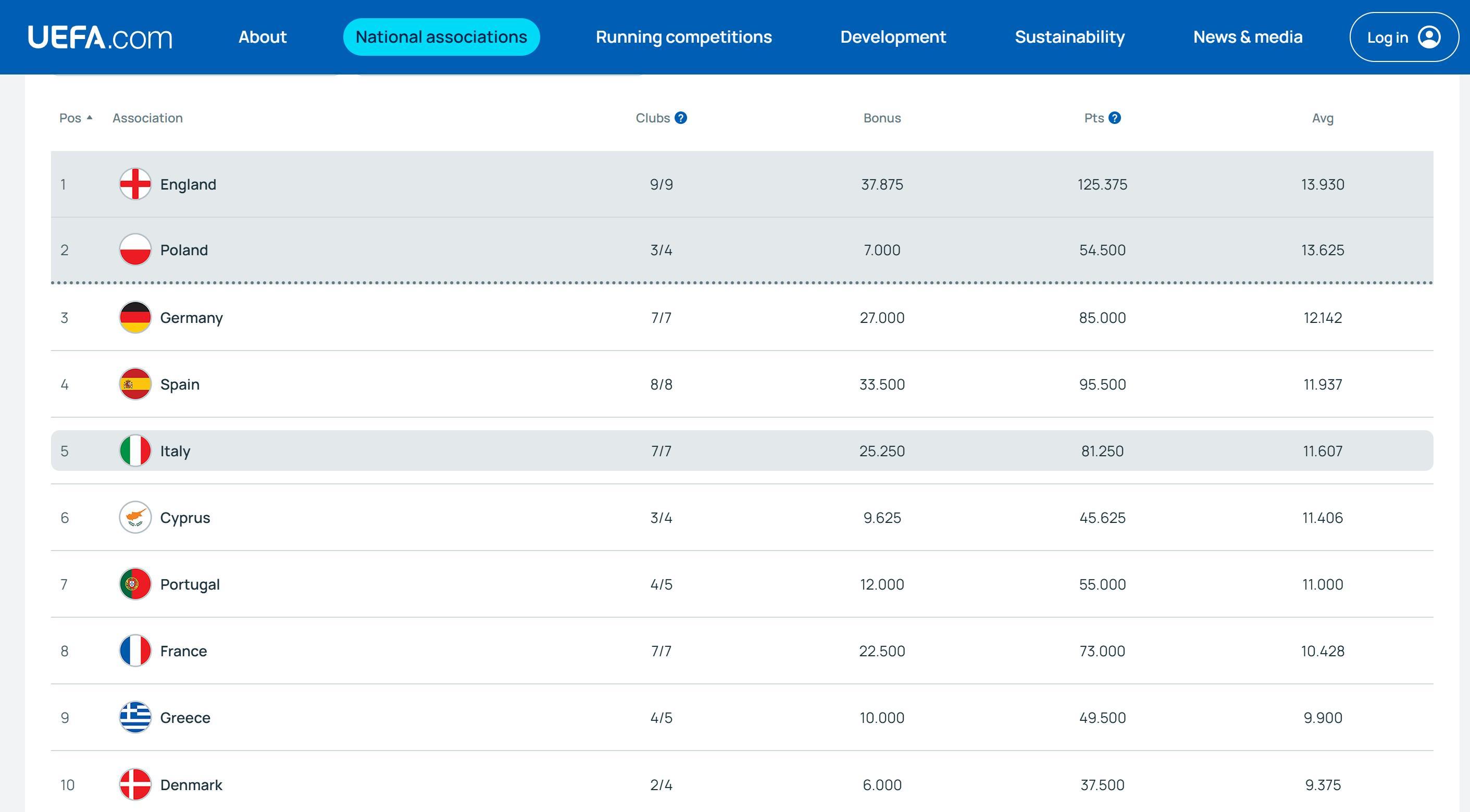 根据规则,当赛季欧战系数平均积分排名前二的两个联赛下赛季都将得到额外的一个欧冠参赛名额。